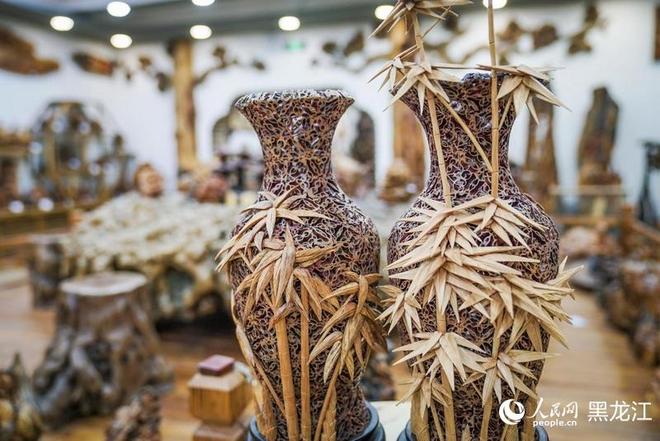 “这些生长在东北的红松沉香木也被誉为‘北沉香’,是红松树干、树瘤经过长期醇化形成的琥珀木,加工红松的剩余物已成为引领我们就业致富的一条新路径。”伊春永达工艺品公司总经理张桂侠表示,“这几年来伊春的游客越来越多了,我们紧随市场需求,在原有的木艺制品上推出了木艺研学、木艺文创等产品,推广木雕文化的同时,也间接带动了上万人的就业。”