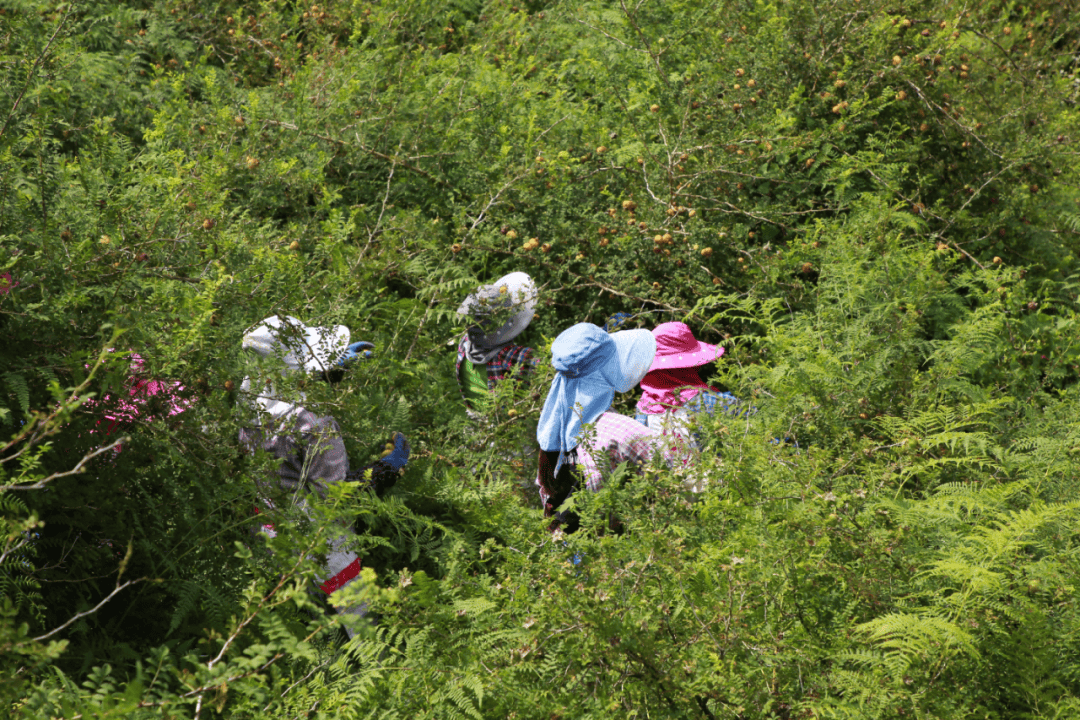600亩刺梨种植基地里,一派繁忙和喜悦的丰收景象。数十名村民穿梭林间,熟练地采摘金黄饱满的刺梨果实,田间地头,装袋、搬运、上车井然有序。