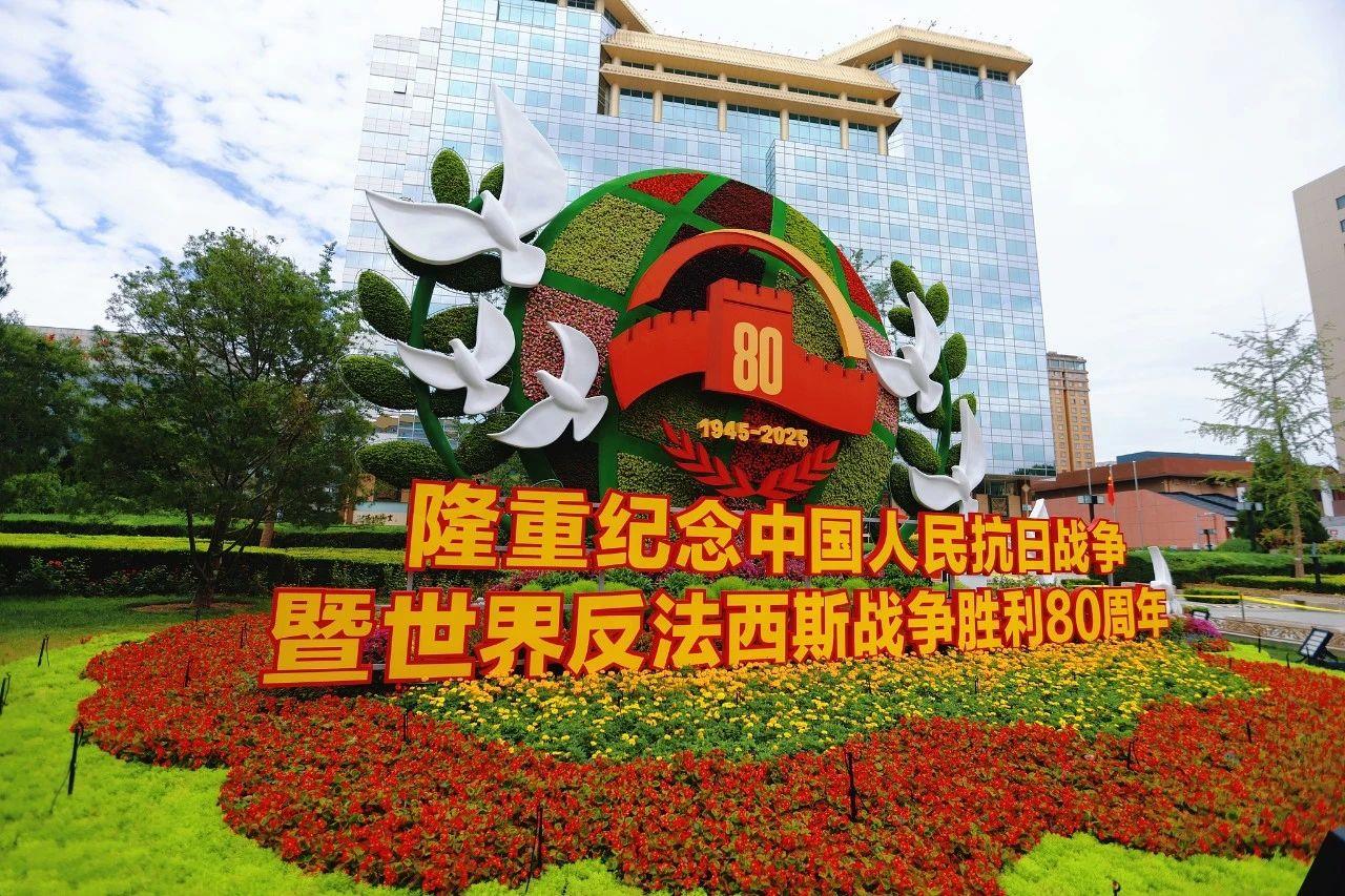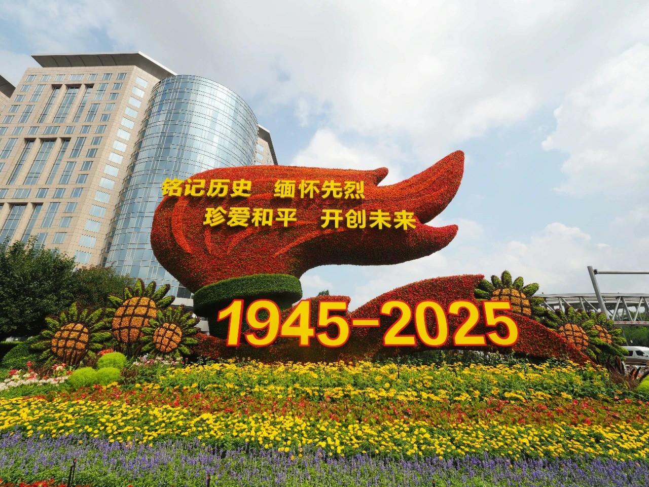 10座纪念中国人民抗日战争暨世界反法西斯战争胜利80周年主题花坛亮相长安街沿线
