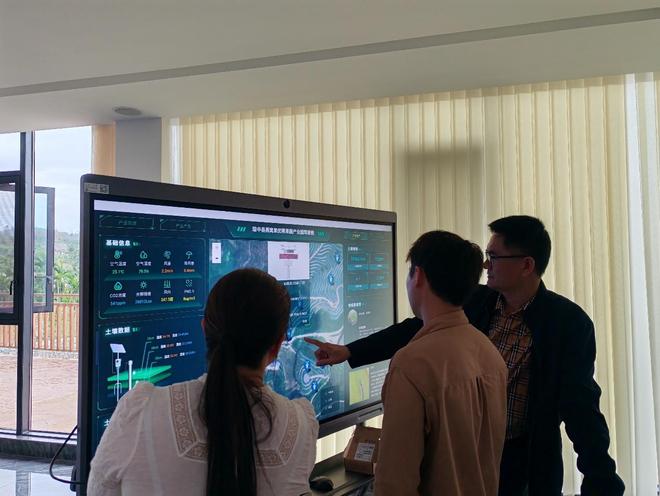 “大屏上的数据都来自田间地头,它们可以实时监测土壤的湿度、温度、养分,还可以监测果实的生长情况,有了这些数据,农民就可以更加科学地进行管理,提高产量和品质。”海南嬿窝果智慧农业开发有限公司总经理朱泉凯指着一块铺满整面墙的智慧农业大屏控制系统说,它相当于种植基地的“产业大脑”。靠着它,基地不仅能在智慧平台全流程实现可监控,还通过农产品质量安全监管实现信息公开、在线溯源信息展示,“三品一标”管理查询等功能,实现农产品质量可追溯。